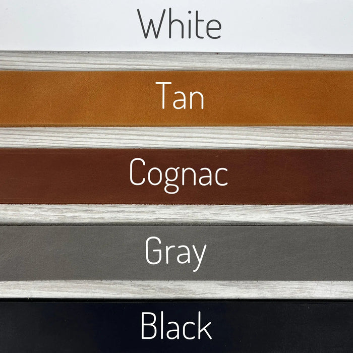 Material of the wall hanging strap: Leather (black, white, cognac, tan, grey).