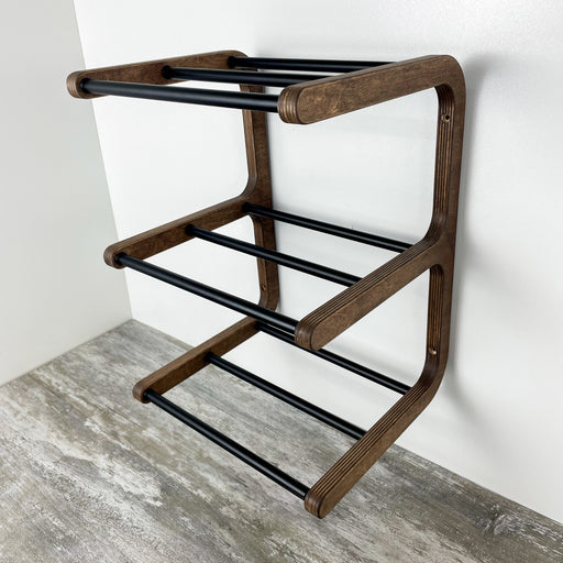 Double Tier Shoe Rack for Wall | Walnut + Black Rods