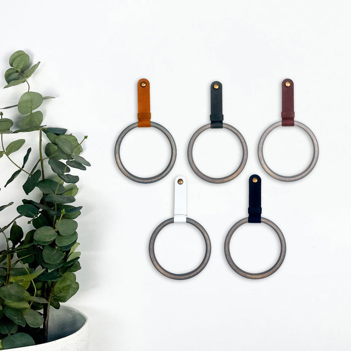 Material of the wall hanging strap: 100% Genuine Leather (black, white, cognac, tan).