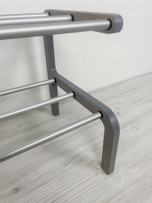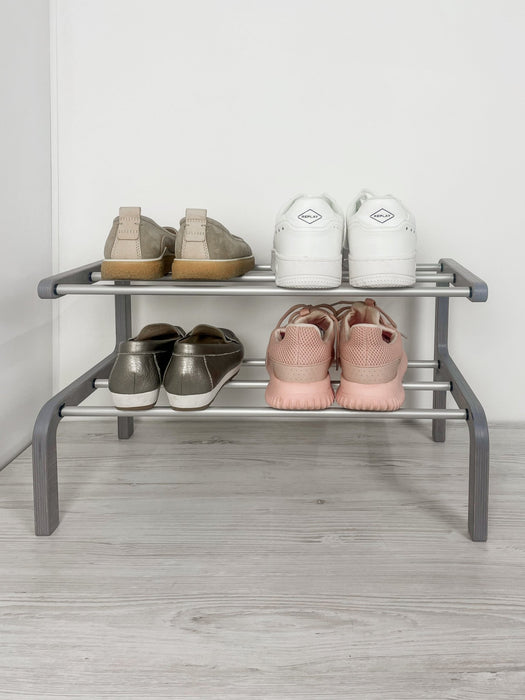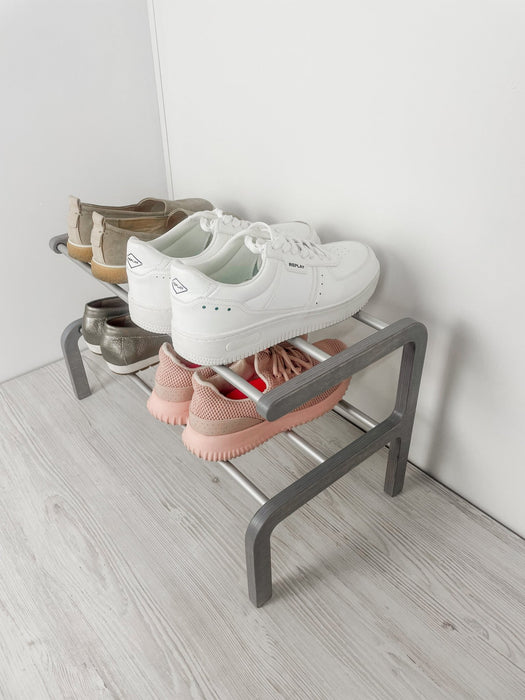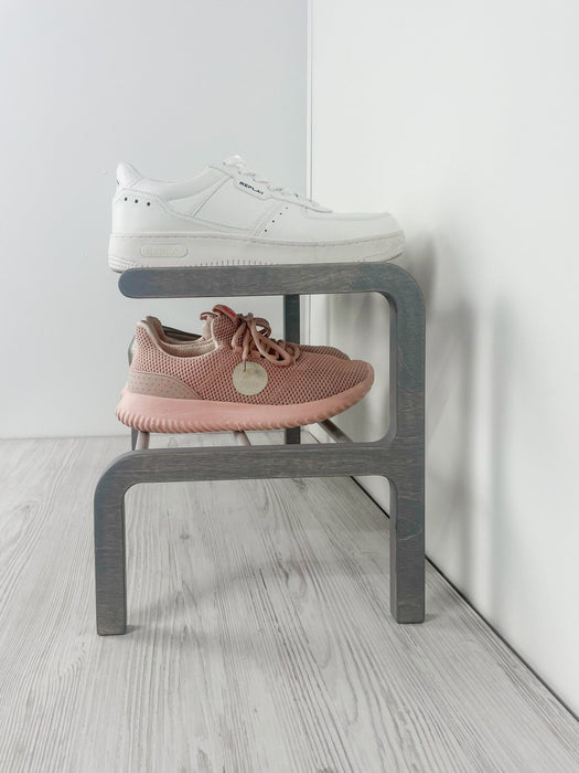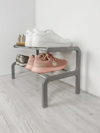 Keep your entryway neat and organized with this 2-tier small wooden shoe rack. Crafted from natural wood, it offers a compact yet functional solution for storing shoes, slippers, or small accessories. Perfect for tight spaces like hallways, closets, or dorm rooms. Its minimalist design adds warmth and simplicity to any interior.