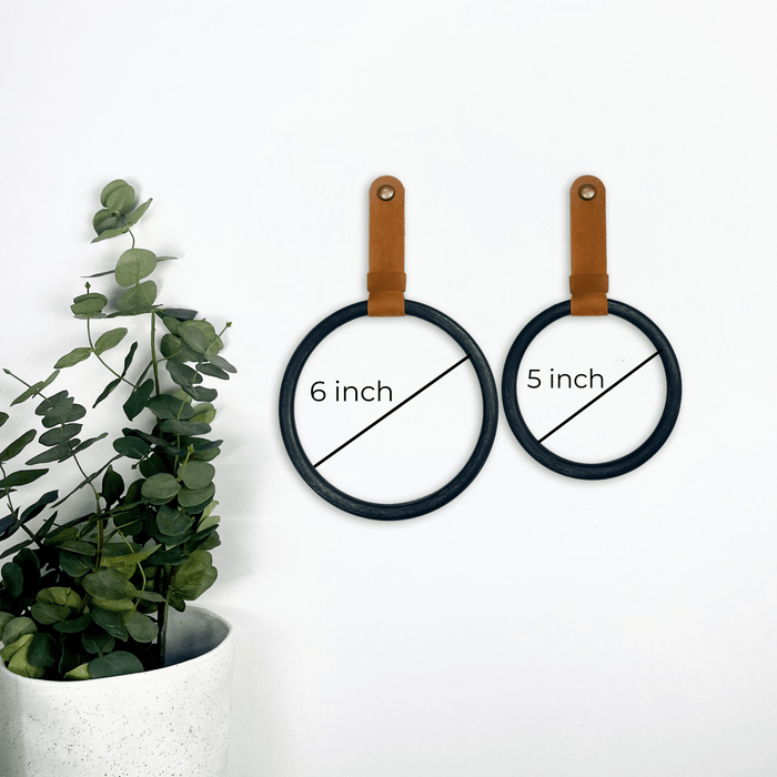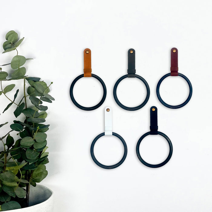 Material of the wall hanging strap: 100% Genuine Leather (black, white, cognac, tan).